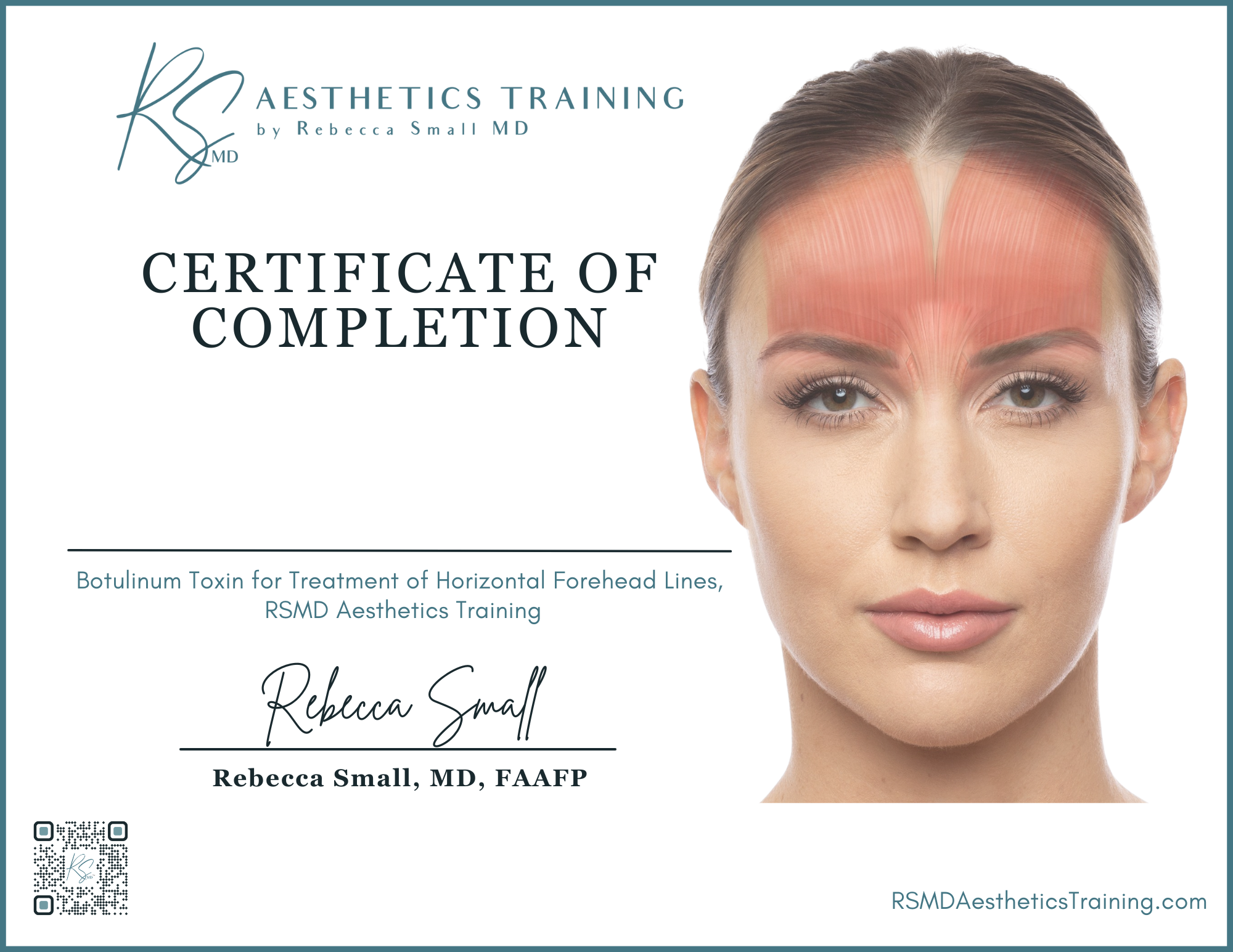 Progress Horizontal Forehead Lines Toxin Complete & Continue Next Lesson Learn More RSMD Training Methodology - Video 1 Lesson Core Concepts - Essential Reading 1 Lesson Classroom - Lecture 1 Lesson Technique Spotlight - Videos 4 Lessons Maya - 42yo Female Lara - 47yo Female Hollis - 41yo Male Roopam - 44yo Female Quiz 1 Lesson RSMD Clinical Reference: Safety Zones - Download 1 Lesson Certificate of Achievement 1 Lesson Horizontal Forehead Lines Toxin Complete & Continue Next Lesson Learn More Certificate of Achievement