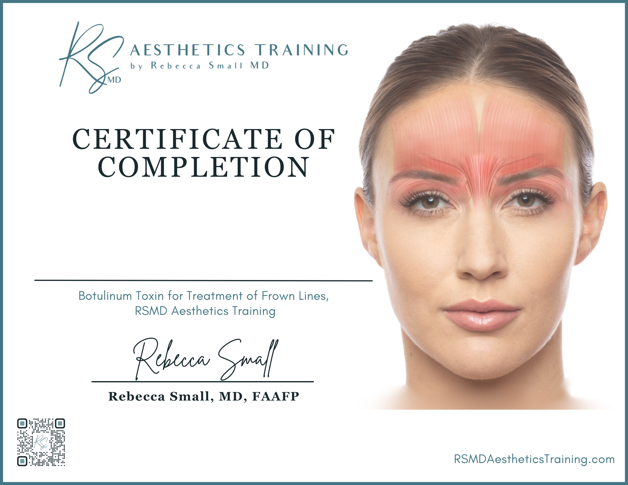 Progress Frown Lines Toxin Course Complete & Continue Next Lesson Learn More RSMD Training Methodology - Video 1 Lesson Core Concepts - Essential Reading 1 Lesson Classroom - Lecture 1 Lesson Technique Spotlight - Videos 4 Lessons Hollis - 41yo Male Roopam - 44yo Female Maya - 42yo Female Lara - 47yo Female Quiz 1 Lesson RSMD Clinical Reference: Safety Zones - Download 1 Lesson Certificate of Completion 1 Lesson Frown Lines Toxin Course Complete & Continue Next Lesson Learn More Certificate of Completion