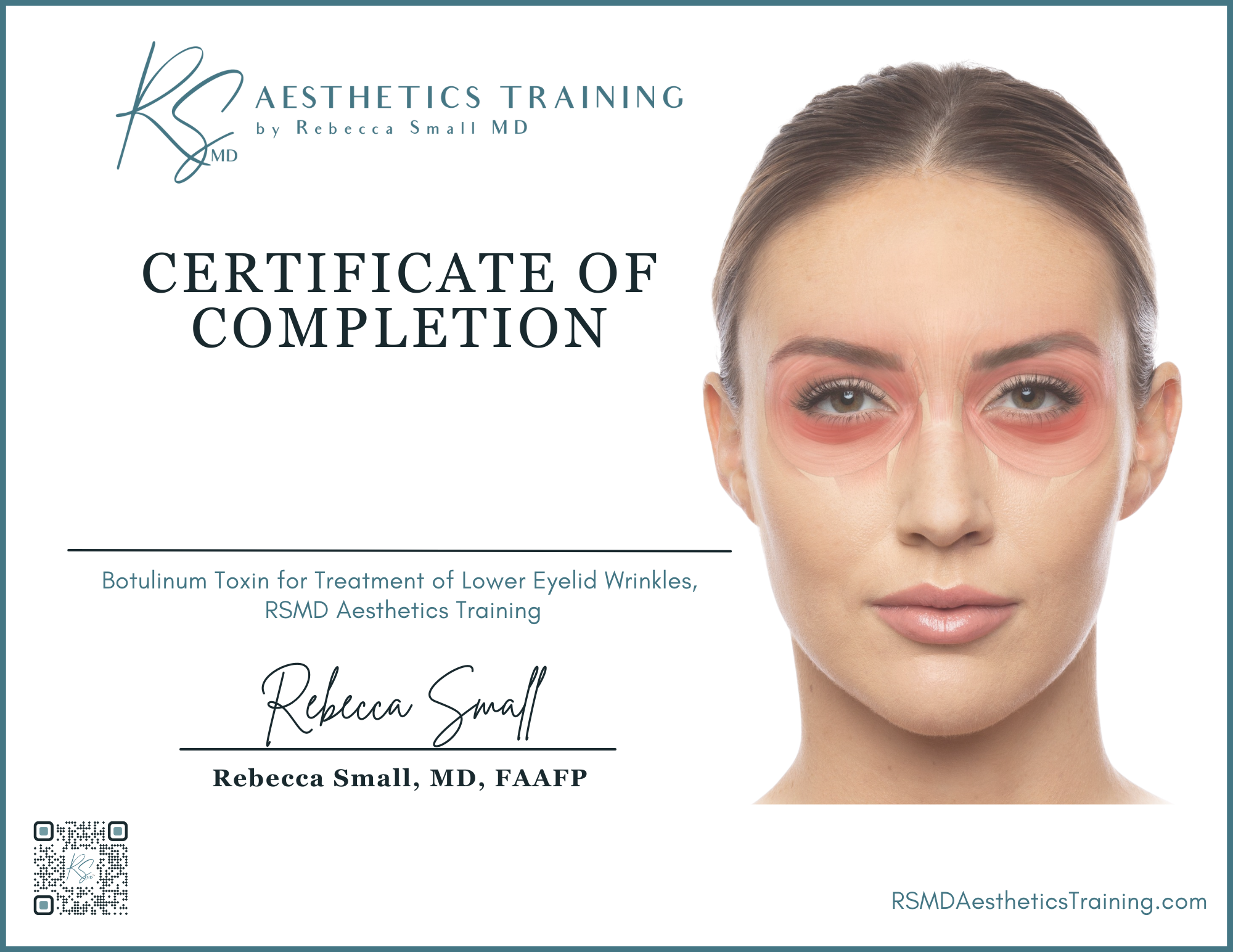 Progress Lower Eyelid Wrinkles Toxin Complete & Continue Next Lesson Learn More RSMD Training Methodology - Videos 1 Lesson Core Concepts - Essential Reading 1 Lesson Classroom - Lecture 1 Lesson Technique Spotlight - Videos 4 Lessons Marissa - 27yo Female Maria - 33yo Female Meghan - 41yo Female Heather - 31yo Female Quiz 1 Lesson RSMD Clinical Reference: Safety Zones - Download 1 Lesson Certificate of Completion 1 Lesson Lower Eyelid Wrinkles Toxin Complete & Continue Next Lesson Learn More Certificate of Completion